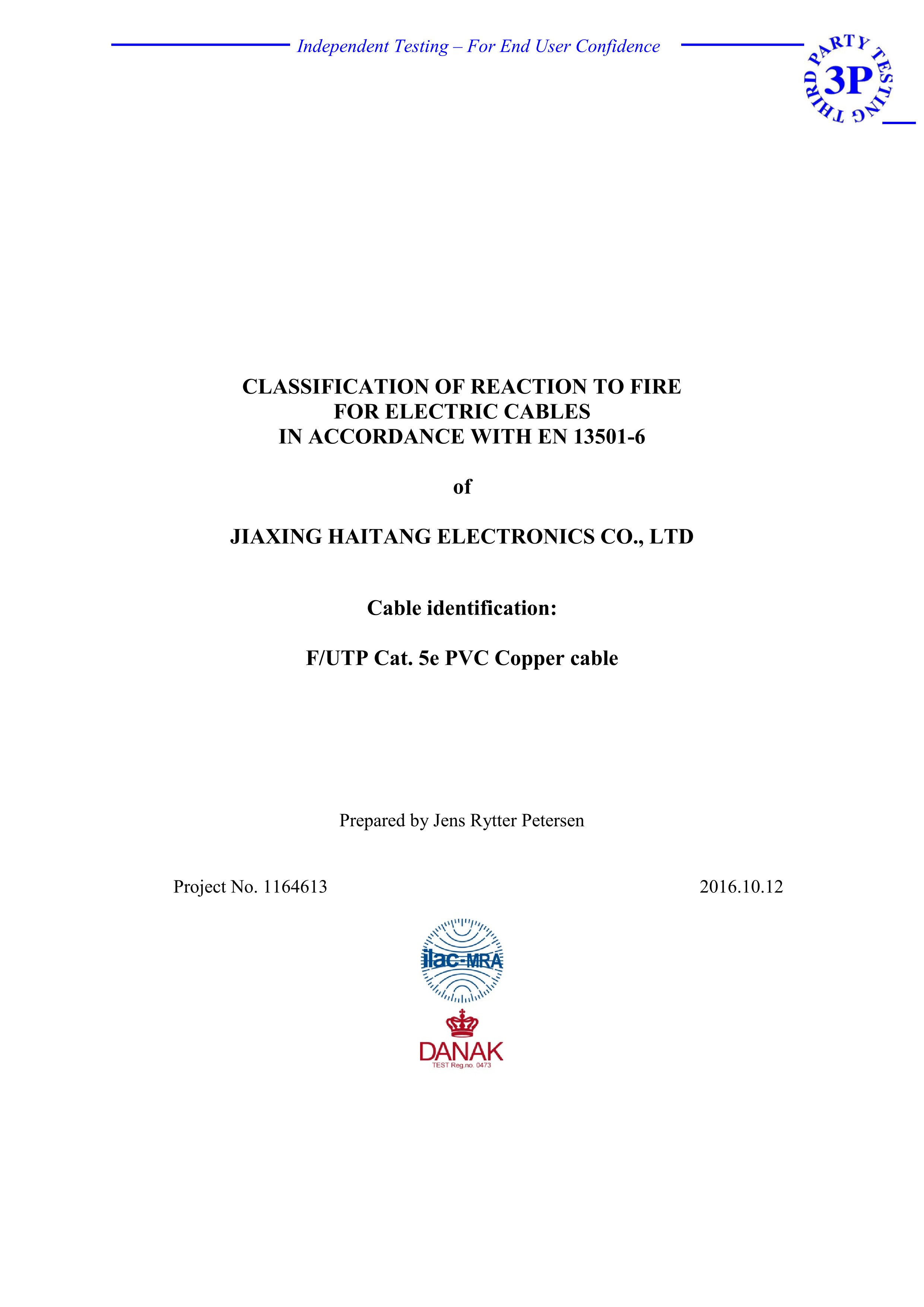 FUTP Cat.5e PVC Copper cable 3P CPR E級(jí)認(rèn)證