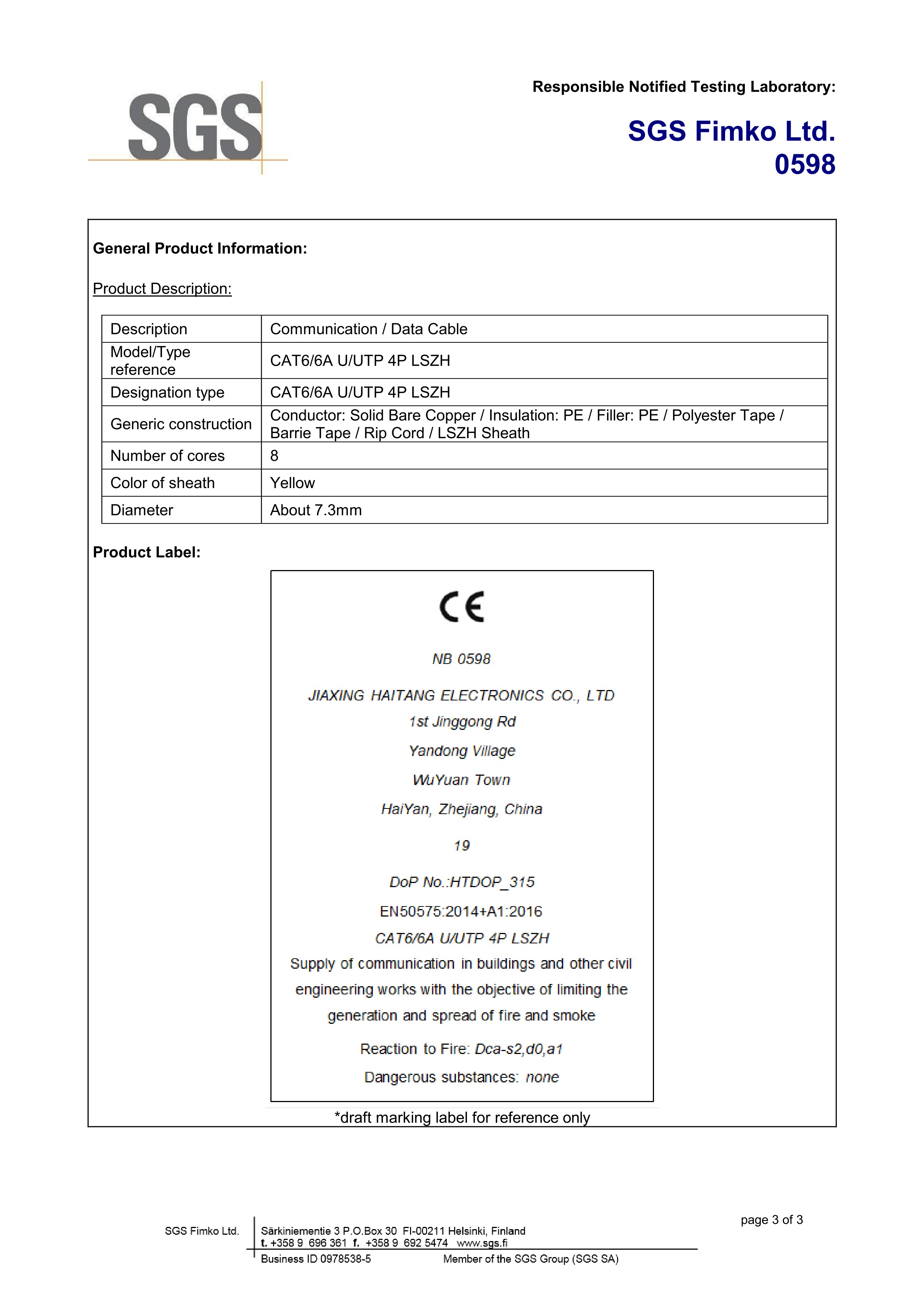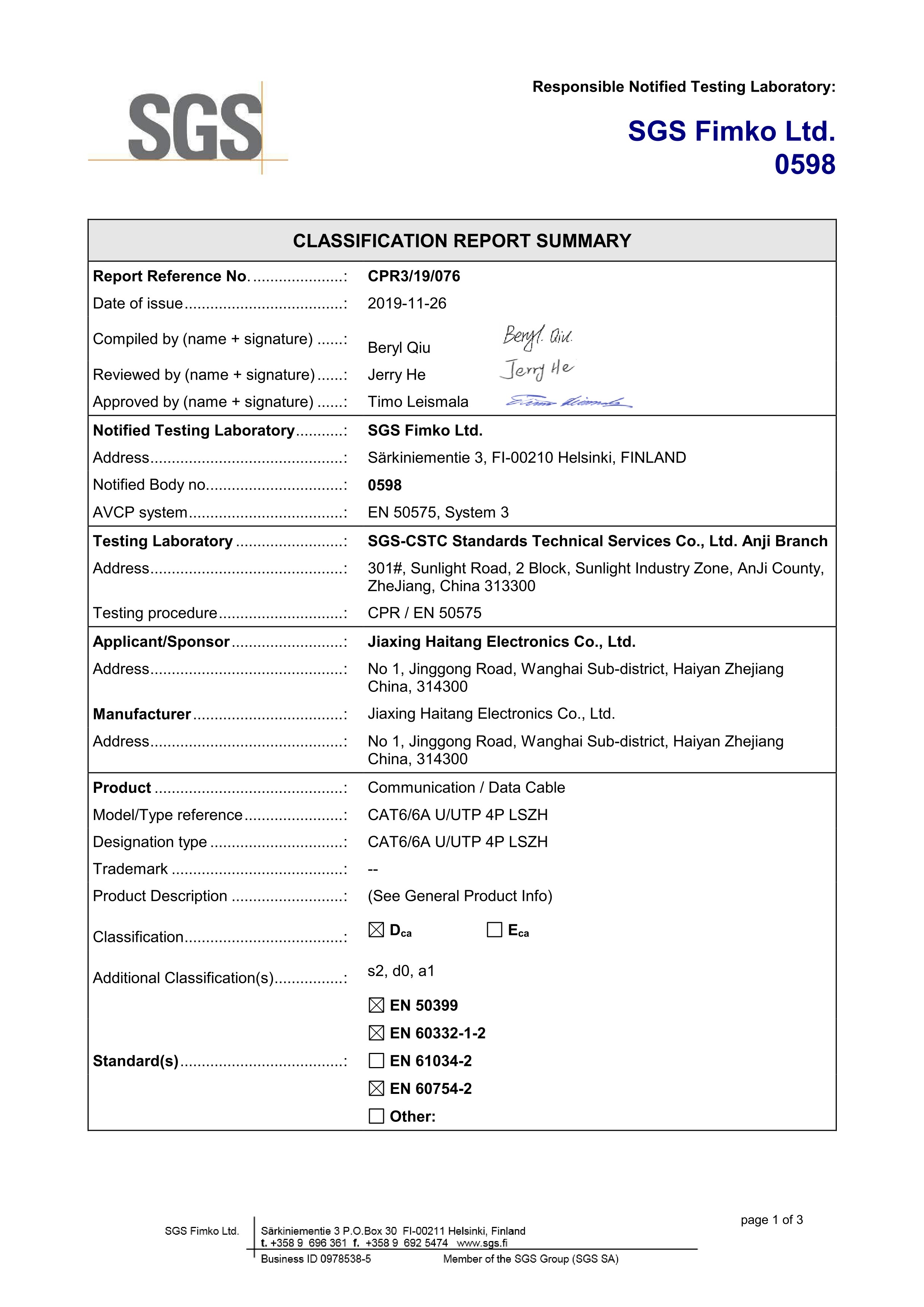 UUTP CAT66A雙面PET LSZH SGS CPR D級(jí)認(rèn)證